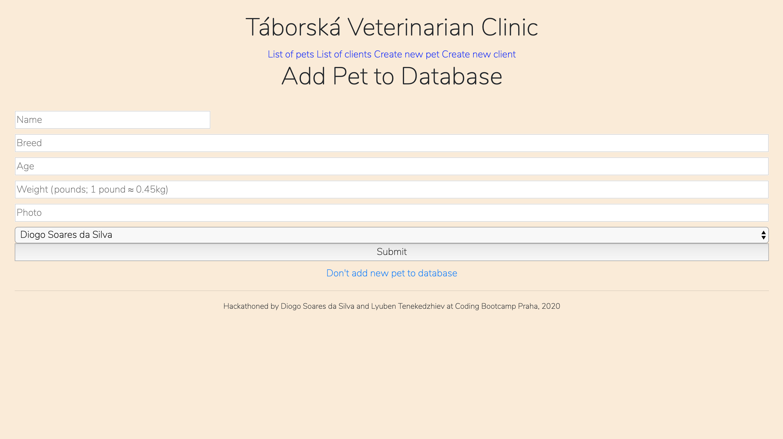 Development of the admin platform for a veterinary clinic, with basic CRUD.
